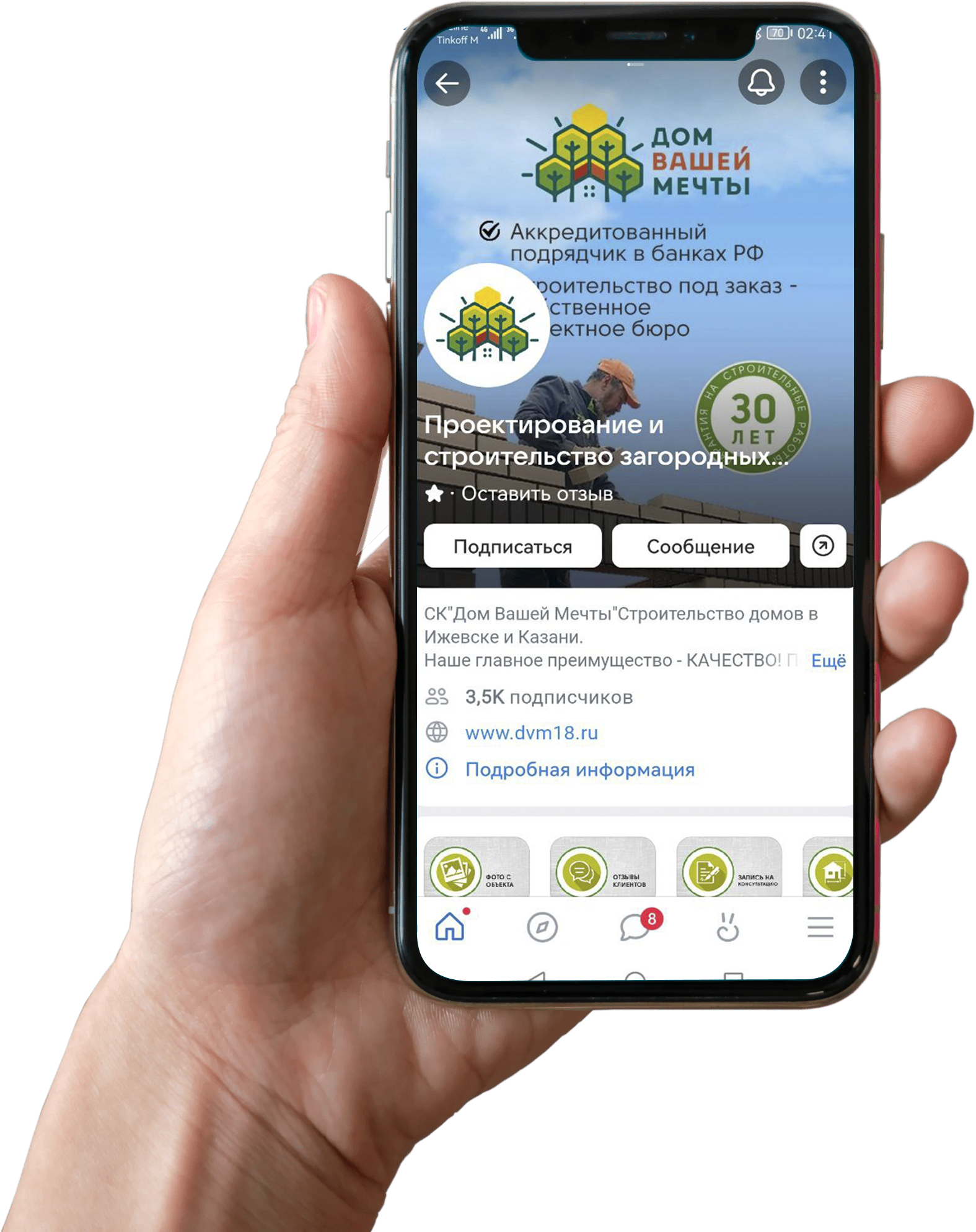 Мы ведем открытую деятельность по строительству каменных домов и не только. Ежедневно мы выкладываем фотографии со строительства домов в нашей группе VK.